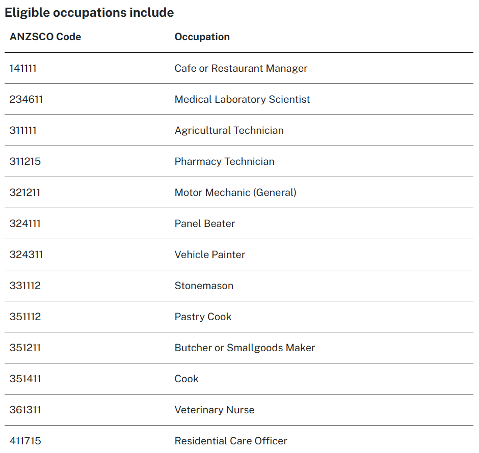 • Ngành nghề phải nằm trong ANZSCO unit group của NSW Regional Skills List. Phải đủ điều kiện cho visa 491.